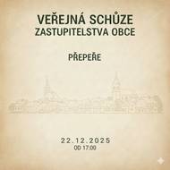 Poslední veřejná schůze zastupitelstva v tomto roce a jelikož je poslední, tak se můžete těšit i na menší občerstvení. Zastupitelstvo obce Přepeře