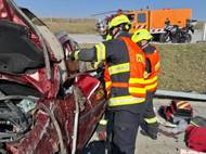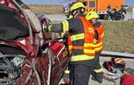 Po havárii osobního vozu na D1 u Oseku nad Bečvou vyprošťovali hasiči dva lidi