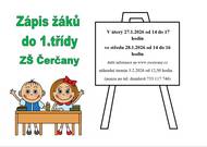 ZŠ Čerčany pořádá ve dnech 27. a 28.1.2026 zápis žáků do 1. tříd.