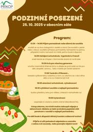 srdečně zve všechny na Podzimní posezení, které se uskuteční v sobotu 25. října v obecním sále od 14 hodin.