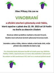 Vinařství Holánek přijede v sobotu 23.9.2023 s pojízdnou vinotékou. Tento výden nabízí bílý burčák za 80 Kč /litr a červený burčák za 100 Kč/litr.