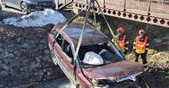Dramatická nehoda v Prlově, auto skončilo v korytě potoka