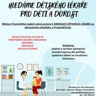 Městys Prosiměřice nabízí volné prostory ORDINACE DĚTSKÉHO LÉKAŘE na zdravotním středisku v Prosiměřicích.