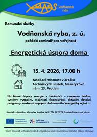 Vodňanská ryba z.ú. pořádá seminář pro veřejnost na téma Energetická úspora doma.