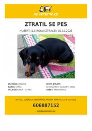 V Oslavanech, okr. Brno - venkov se 2.10. ztratil 1,5 roku starý jezevčík jménem Hubert!!! Kdybyste měli nějaké informace, volejte prosím na 606887152, případně napište na email hokar237@seznam.cz Hubert je 1,5 roku starý černý jezevčík. Má zelený obojek se známkou a kontaktem. Je čipovaný (941000029193856), není kastrovaný a váží tak 10kg. Je to mladý pejsek veselé povahy, slyší na jméno Hubert. Ztracen při procházce v lese. Na obojku měl Hubert připevněnou stopovačku. V případě, že se někde chytnul, tak ji mohl překousat nebo se vyvléknout z obojku. Pokud byste byli tak hodní, vytiskněte prosím pátrací letáček, který naleznete v příloze emailu a vyvěste ho na nástěnku, do výlohy či na jiné viditelné místo. Také si ho můžete vložit na své webové stránky. Starosty okolních obcí prosíme o vyhlášení obecním rozhlasem!!! Aktuální info o pátrání najdete zde: https://www.psidetektiv.cz/zvire/hubert-brno-venkov-2025-10-02 Leták ke sdílení najdete i na naší facebookové stránce: www.facebook.com/PsidetektivCZ Děkuji za pomoc, Karel Horák