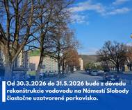 V dňoch od 30.3.2026 do 31.5.2026 bude prebiehať rekonštrukcia vodovodu na Námestí Slobody, ktorú realizuje Považská vodárenská spoločnosť, a. s.. Z ...