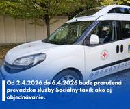 Oznamujeme, že od 2.4.2026 (štvrtok) do 6.4.2026 (pondelok) bude prerušená prevádzka služby Sociálny taxík ako aj jej objednávanie. Prevádzka a prijím...