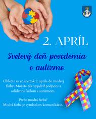 Vo štvrtok 2. apríla sa môžete zapojiť do celosvetovej iniciatívy pri príležitosti Svetového dňa povedomia o autizme. Tento deň si pripomíname od roku 2008 a jeho súčasťou je modrá farba, ktorá je symbolom komunikácie. Modrým oblečením tak vyjadrujeme podporu, porozumenie a solidaritu ľuďom s autizmom.