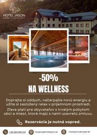 Wellness Hotel Jason vo Vršatskom Podhradí ponúka pre občanov s trvalým pobytom v Púchove zľavu vo výške 50 % na vstup (v trvaní 120 min.) do wellness...