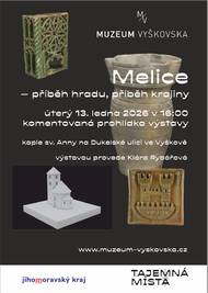Před 2 měsíciMELICE - PŘÍBĚH HRADU, PŘÍBĚH KRAJINYVážení spoluobčané, od 7. 11. 2025 do 30. 9. 2026 se v kapli sv. Anny na ulici Dukelské ve Vyškově uskuteční výstava Melice – příběh hradu, příběh krajiny. Výstava vznikla v rámci projektu Tajemná místa, jehož cílem je představit unikátní archeologické nálezy ze sbírek muzeí Jihomoravského kraje. Vernisáž výstavy se uskuteční 7. listopadu v 17.00 hodin.