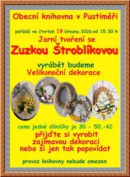 Před 1 měsícemJARNÍ TVOŘENÍ V KNIHOVNĚObecní knihovna v Pustiměři pořádá ve čtvrtek 19. 3. 2026 od 15.30 hod. Jarní tvoření se Zuzkou Štroblíkovou, při kterém se budou vyrábět velikonoční dekorace. Cena jedné dílničky je 30-50 Kč. Přijďte se vyrobit zajímavou dekoraci nebo si jen popovídat. Provoz knihovny nebude akcí omezen.