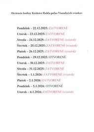 Otváracie hodiny Obecného úradu v Rabči počas Vianočných sviatkov: