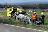 Havárie u Rabštejnské Lhoty: Osobní auto vyletělo ze silnice a skončilo na střeše