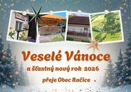 Přejeme Vám klidné a pohodové prožití vánočních svátků a do nového roku 2026 Vám přejeme hlavně zdraví, štěstí, dobrou náladu a jen to dobré. Těšíme se na další setkávání s Vámi Vaše Obec Račice