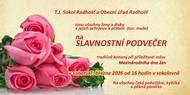 T.J.Sokol Radhošť a Obecní úřad Radhošť zvou všechny ženy a dívky a jejich ochránce a přátelé /tzn.muže/ na slavnostní podvečer Mezinárodního dne žen v sobotu 7. března 2026 od 16 hodin v sokolovně. Na všechny čeká pohoštění, kytička, a pěkná písnička.