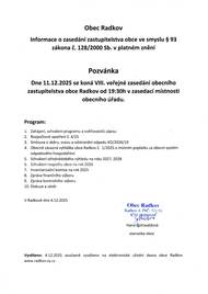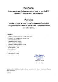 Pozvánka na VII. veřejné zasedání obecního zastupitelstva obce Radkov dne 30.10.2025 od 19:30h v zasedací místnosti obecního úřadu.
