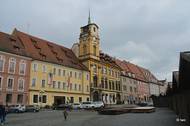 Na východní straně náměstí Krále Jiřího z Poděbrad v Chebu stojí "polovičatá" budova tzv. Nové radnice. Wiki: Radnice v Chebu (též Nová radnice) je barokní budova z 1. poloviny 18. století situovaná n
