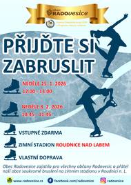 Zveme všechny občany Radovesic a jejich přátele na soukromé bruslení, které se uskuteční na zimním stadionu v Roudnici nad Labem.