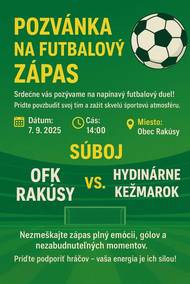 Obecný futbalový klub Rakúsy Vás srdečne pozýva na napínavý futbalový duel, ktorý sa odohrá už 7. septembra 2025 o 14:00 v obci Rakúsy!
