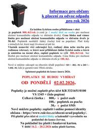 Upozorňujeme občany, že poplatky za odpad, psy a SMS zprávy se platí od 2.února. Žluté bloky 2025 do sběrného dvora platí ještě v lednu 2026.