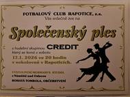 FOTBALOVÝ CLUB RAPOTICE, z.s. Vás srdečně zve na Společenský ples - dne 17. 01. 2026