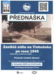 Dům Štěpánka Netolického vás zve na přednášku na téma Zaniklá sídla na Třeboňsku po roce 1945 (osada Blata, Krabonoš a Rybné). Akce se bude konat 6. listopadu od 16:00 v Domě Štěpánka Netolického. Přednášet bude pan Vladimír Bednář. Všichni jste srdečně zváni!