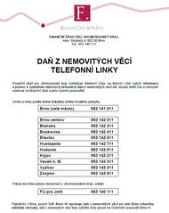 Informační letáky k telefonním linkám pro zodpovídání dotazů z oblasti daně z nemovitých věcí a informace o výjezdech do obcí.