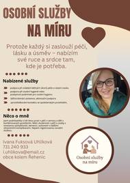 Rehenice: Vazeni obcane, nove muzete vyuzit nabidky sluzeb na miru nejen pro seniory, ktere nabizi pani Ivana Uhlikova Fuksova. Pro vice informaci se kontaktujte na tel. cisle: 731 240 933 nebo na nasich webovych strankach : www.rehenice.cz a obecnich vyveskach.