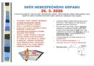 Dne 26.3.2026 proběhne v naší obci sběr nebezpečného odpadu. Odpad přistavte před váš dům nejpozději do 6:00 hod. svozového dne. Jedná se např. o: televizory, rádia, akumulátory, lednice, trouby, pračky, barvy, drobné domácí spotřebiče, pneumatiky, apod.
