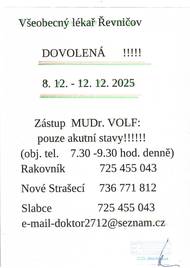 Dovolená praktického lékaře 8.12. - 12.12.