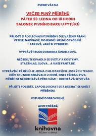 ZVEME VÁS NA VEČER PLNÝ PŘÍBĚHŮ. PŘIJĎTE SI POSLECHNOUT PŘÍBĚHY DLE VAŠEHO PŘÁNÍ. VESELÉ, NAPÍNAVÉ, DOJEMNÉ I ÚPLNĚ OBYČEJNÉ – TAKOVÉ, JAKÉ SI VYBERETE. VYPRÁVĚT BUDE DOMINIKA ŠINDELKOVÁ.