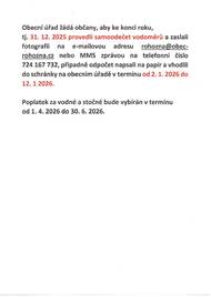 Obecní úřad žádá občany od samoodečet vodoměru k 31.12.2025.
