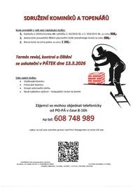 Sdružení kominíků a topenářů bude provádět v naší obce 13.3.2026 kontroly a čištění komínů ......