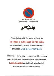 Obecní úřad upozorňuje občany, že poplatek za komunální odpad musí být zaplacen na 30.4. 2026. Můžete již také platit poplatek za vodné a stočné a psy. Pokud budete provádět platbu přes účet, zavolejte na tel. č. 724 167 732 (v době úředních hodin) nebo napiště e-mail na: rohozna@obec-rohozna.cz, kde Vám sdělíme částku k úhradě.