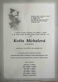 V hlubokém zármutku oznamujeme všem spoluobčanům, že nás navždy opustila paní KVĚTA MÍCHALOVÁ
