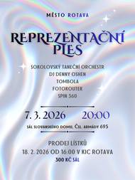 Zveme vás na tradiční Reprezentační ples města Rotava. Večer plný hudby, tance, zábavy a skvělé atmosféry.