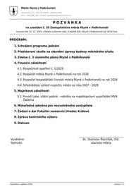 Jednání zastupitelstva města Rtyně v Podkrkonoší se uskuteční v Malém kulturním sále v pondělí 15. 12. 2025 od 18:00 hodin. Jednání zastupitelstva bude opět vysíláno ONLINE na YouTube kanálu města ZDE