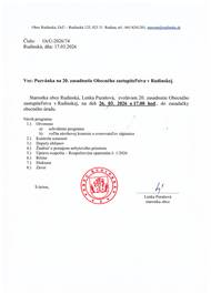 Pani starostka obce Rudinská zvoláva 20. zasadnutie OZ v Rudinskej, na deň 26.03.2026 o 17:00 hod. do zasadačky obecného úradu.