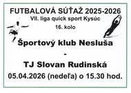 Dňa 05. apríla 2026 to je v nedeľu odohrajú naši futbalisti 16. kolo, kde bude súperom Športový klub Nesluša. Zápas začne o 15.30 hod na ihrisku súpera. Príďte povzbudiť našich futbalistov, všetci ste vítaní.