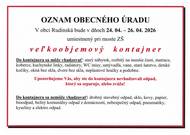 V obci Rudinská bude v dňoch 24.04. - 26.04.2026 umiestnený pri moste ZŠ veľkoobjemový kontajner.