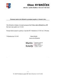 Obec Rybníček tímto zveřejňuje výsledek výběrového řízení na pronájem bytu 2+kk na adrese Rybníček č.p. 109, které bylo vyhlášeno dne 13. 8. 2025. Na základě posouzení všech podaných žádostí bylo rozhodnuto o výběru žadatele, který splnil veškeré podmínky pro pronájem. Pronájem bytu bude nabídnut panu Robinovi H. V Rybníčku, dne 3.9.2025 Martin Kolařík-starosta obce Rybníček