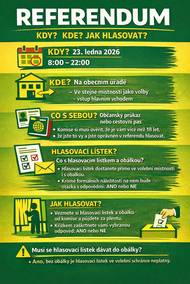Vážení občané, REFERENDUM se nám blíží, již příští pátek 23.1.2026 od 8 do 22h rozhodneme. Proto přinášíme manuál se základními informacemi. Každý hlas je důležitý, přijďte. ????