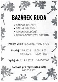 Bazárek v Rudě Příjem věcí 16.4. od 16 do 17:30 Prodej 17.4. od 15 do 18 hodi
