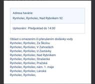 Vážení občané, část obce postihla havárie vody. Předpoklad obnovení do 14:00.