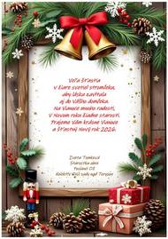 Prajeme Vám pokojné a radostné vianočné sviatky plné pohody a tepla domova. Nech Vám nový rok prinesie zdravie, šťastie a veľa dôvodov na úsmev.