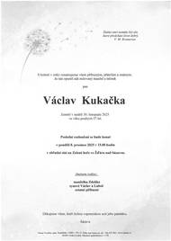 V neděli 30.11. ve věku 57 let zemřel pan Václav Kukačka. Se zesnulým se rozloučíme v pondělí 8. prosince v 15:00 hodin v obřadní síni na Zelené hoře.