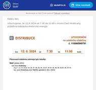 informujeme, ze 12.6.2024 od 7:30 do 11:00 v mistni casti hrobicany probehne odstavka elektricke energie.