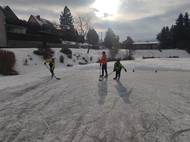 V rámci hodin tělesné výchovy využily děti 3. - 9. ročníků zamrzlé rybníky k bruslení.