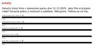 Vážení občané, v sekci ankety na webu obce můžete hlasovat jaký snímek by jste rádi viděli 13.12. na vánočním promítání v parku. https://www.sedlnice.cz/ankety