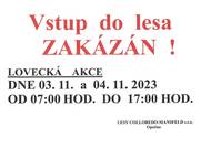 Oznámení - zákaz vstupu do lesa 03. - 04. 11 2023